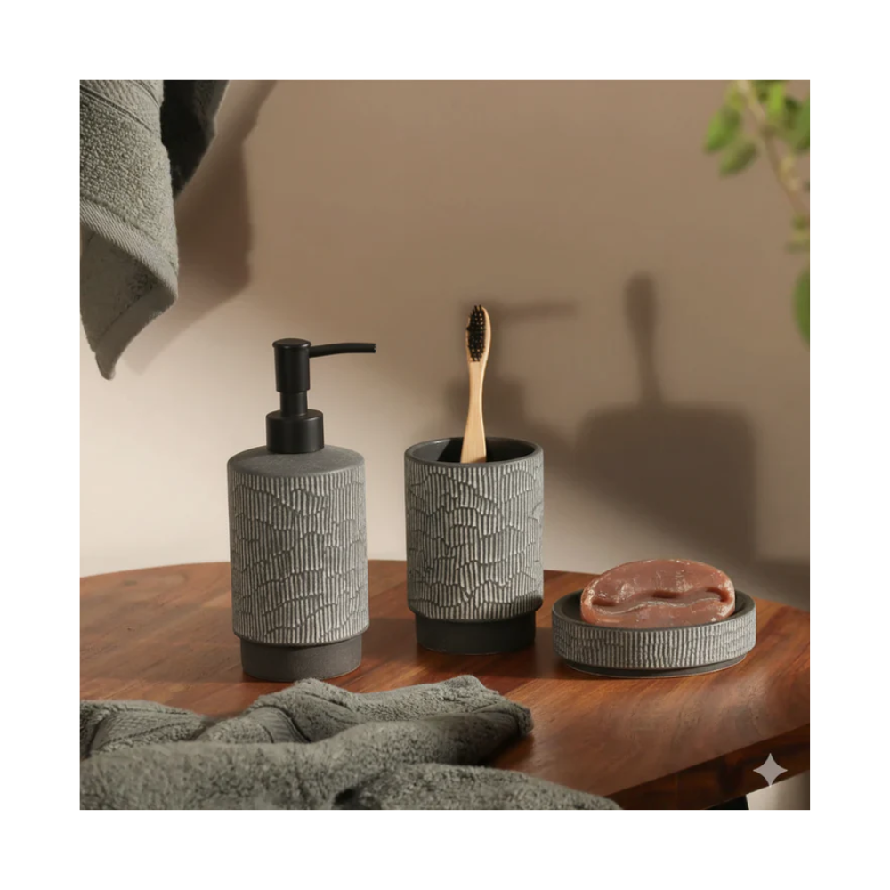 Accesorii pentru baie, ceramica, model COS03-2, gri, set 3 piese