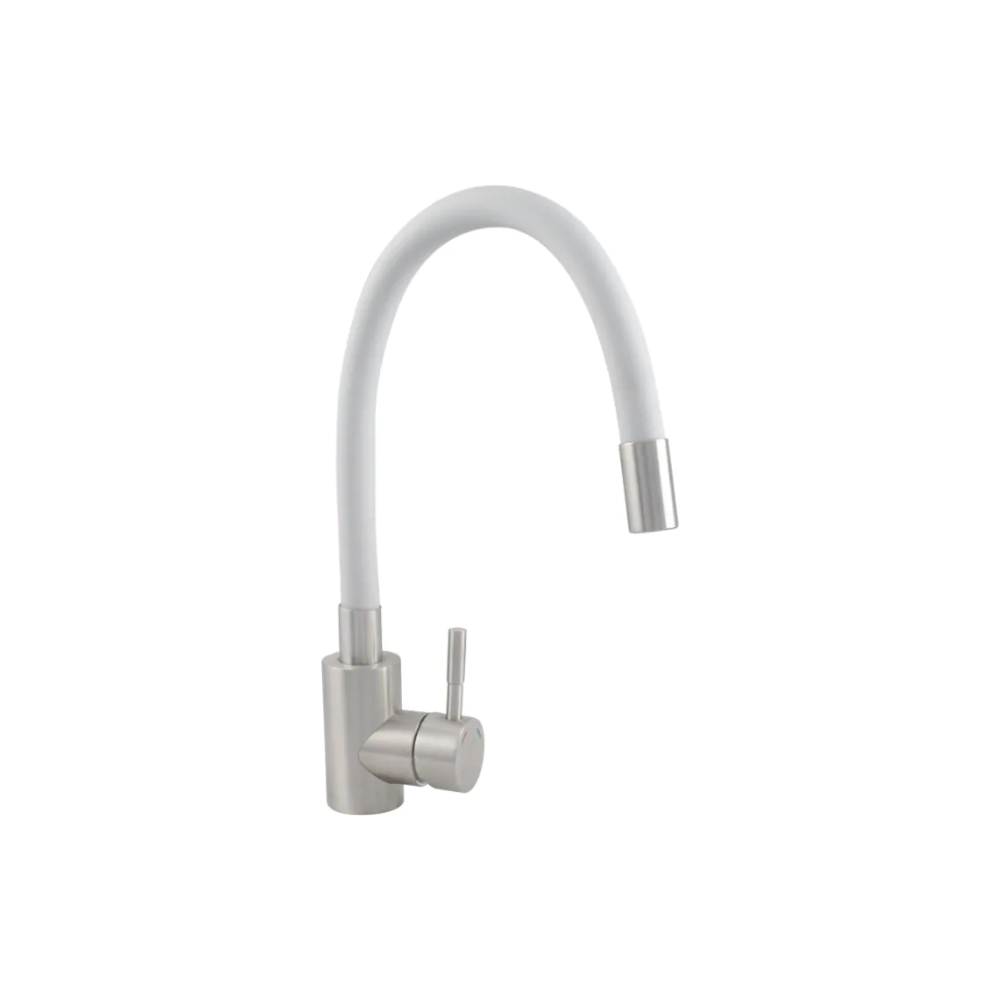 Baterie bucatarie Ermetiq ER-YX208A, pipa flexibila, cartus ceramic, inox, alb