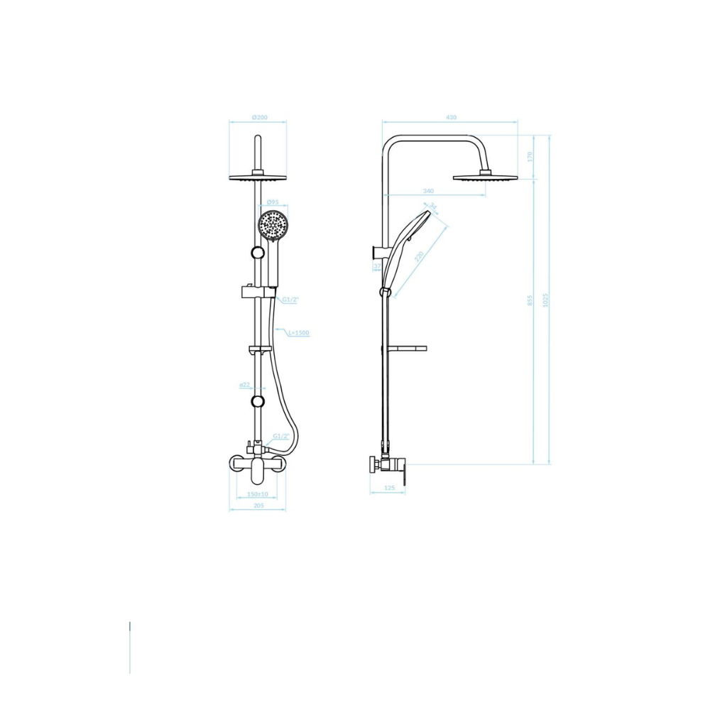 Inclus:baterie fără comutator, duș ploaie, duș de mână, furtun de duș, tija de duș, sapunieră.