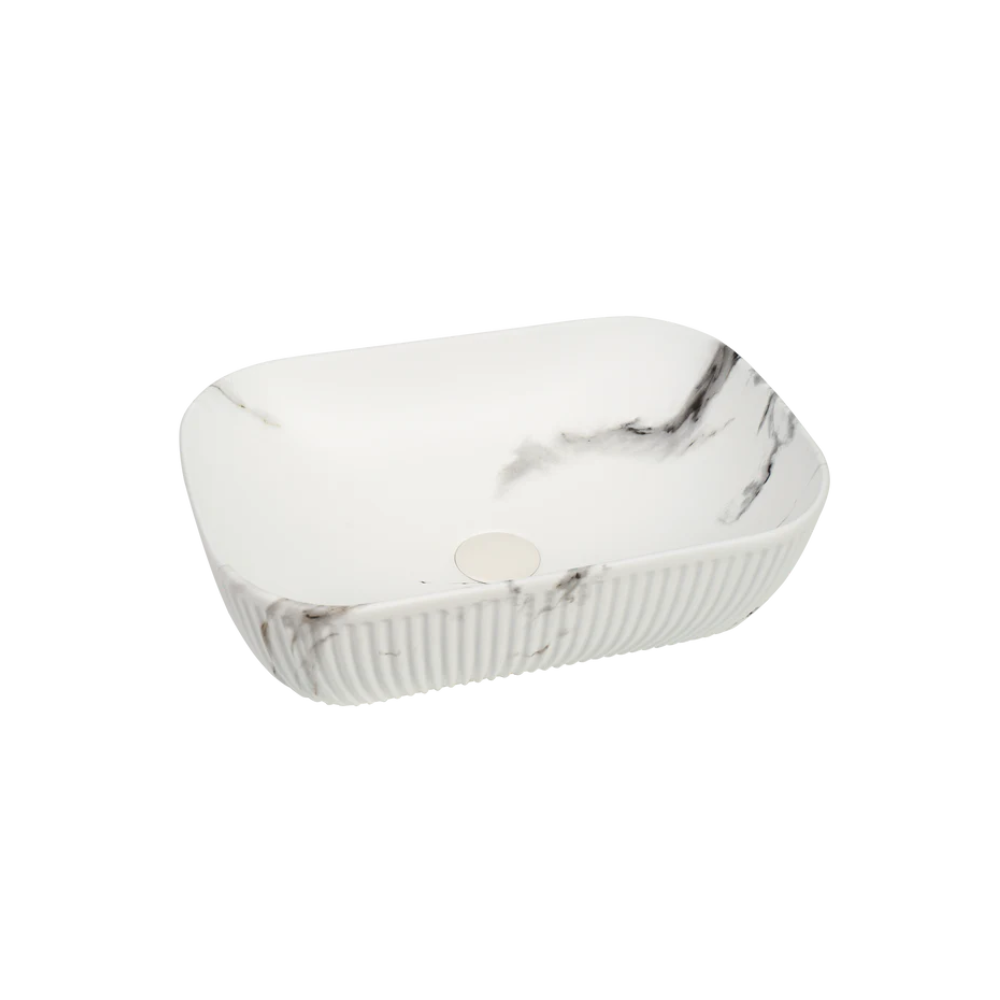 Lavoar pentru blat, ceramic alb cu efect marmorat, Zen A426L