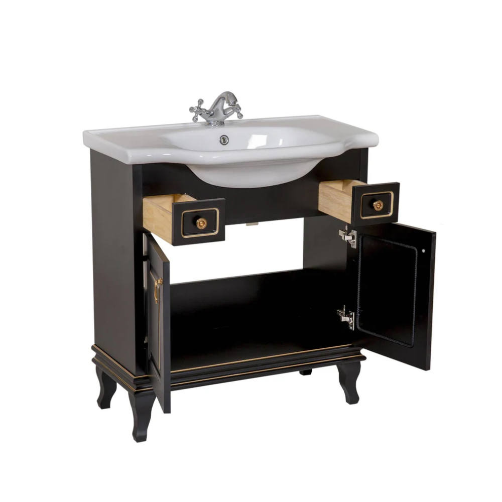 Masca Beatrice cu lavoar ceramica, negru+auriu, 80 cm