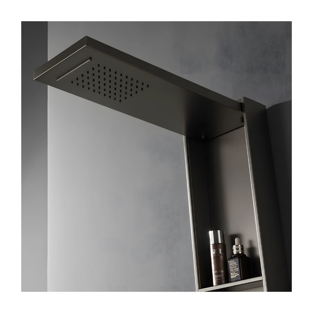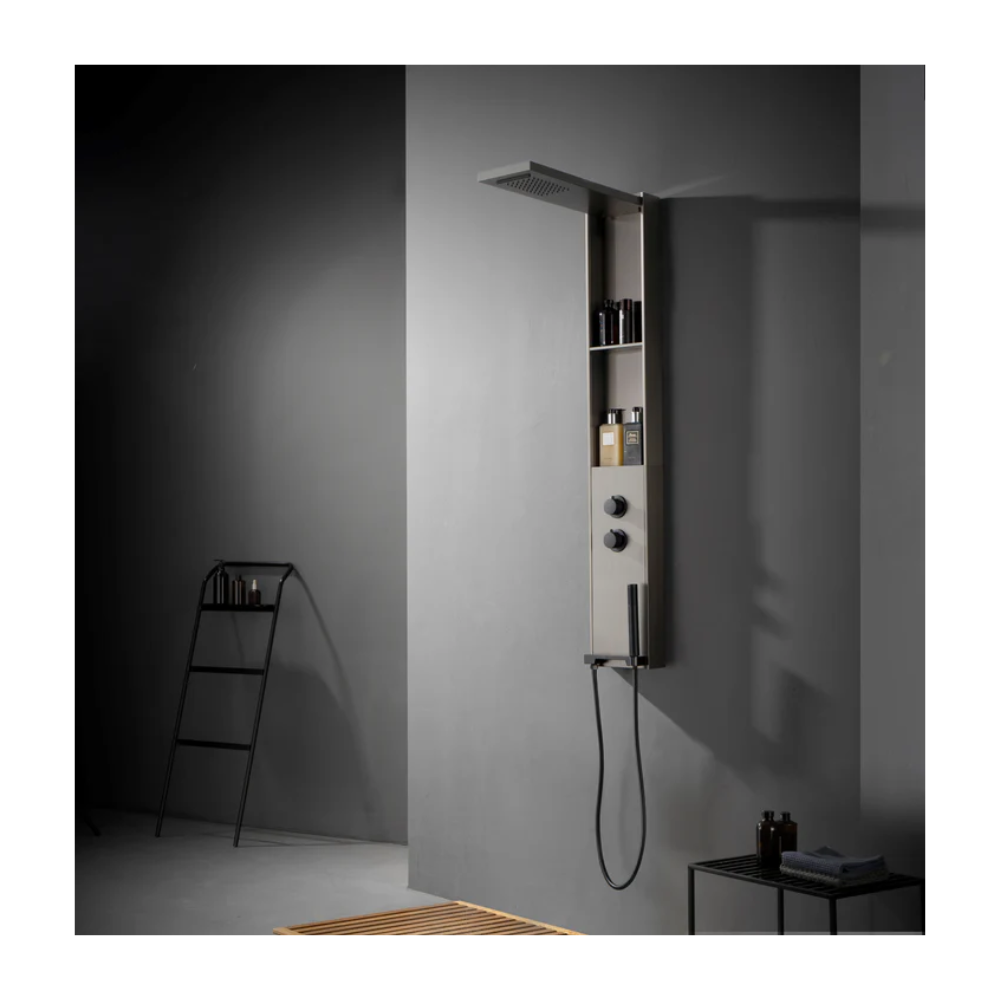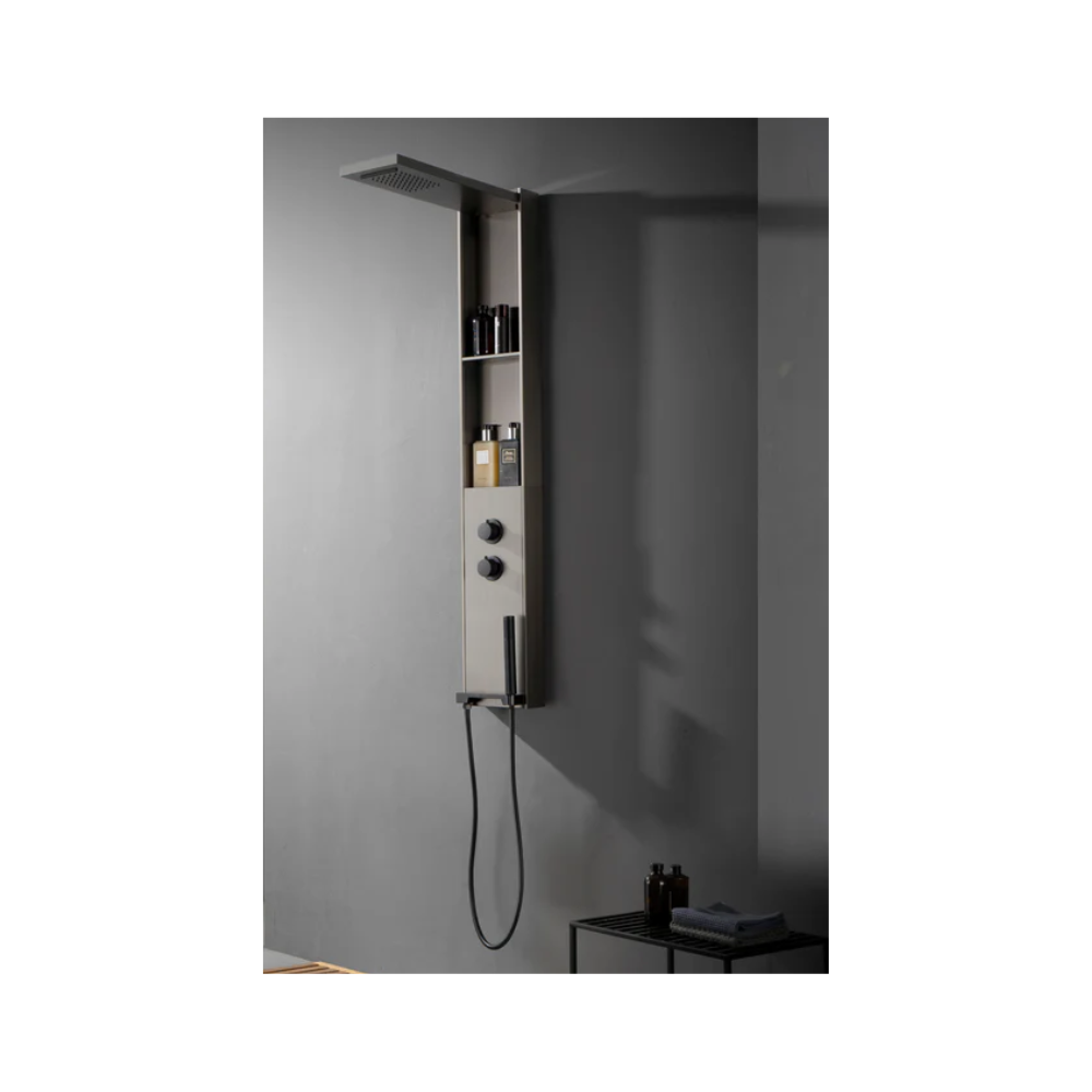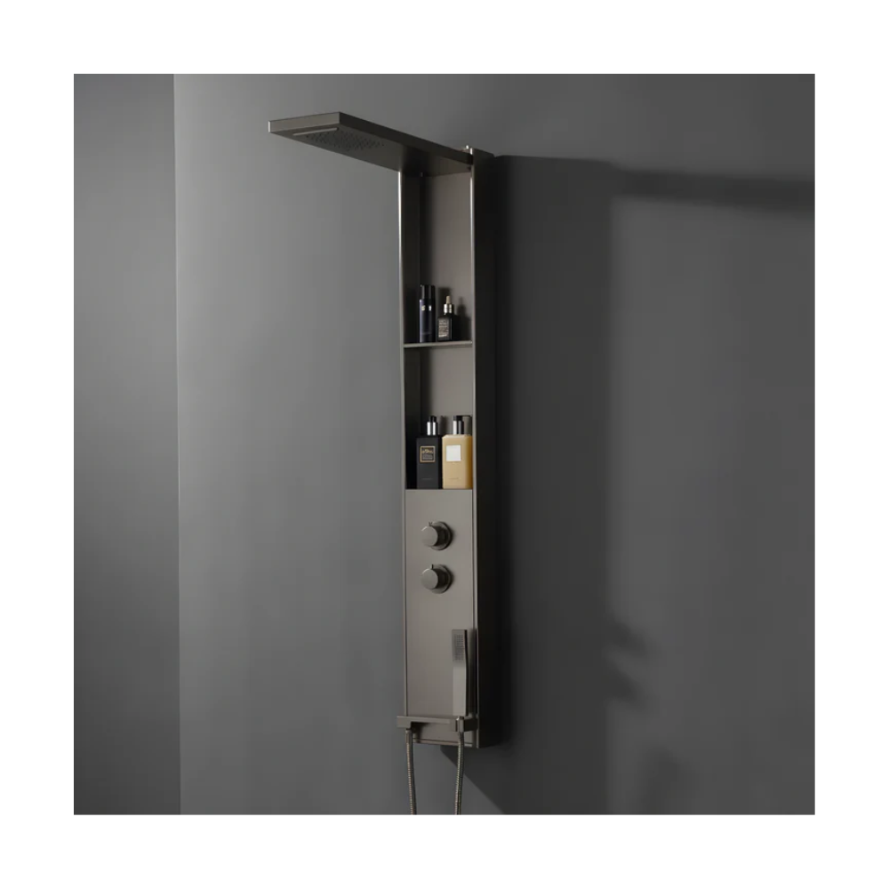 Panou pentru dus, Gun Metal, inox, dus fix si mobil, rafturi integrate