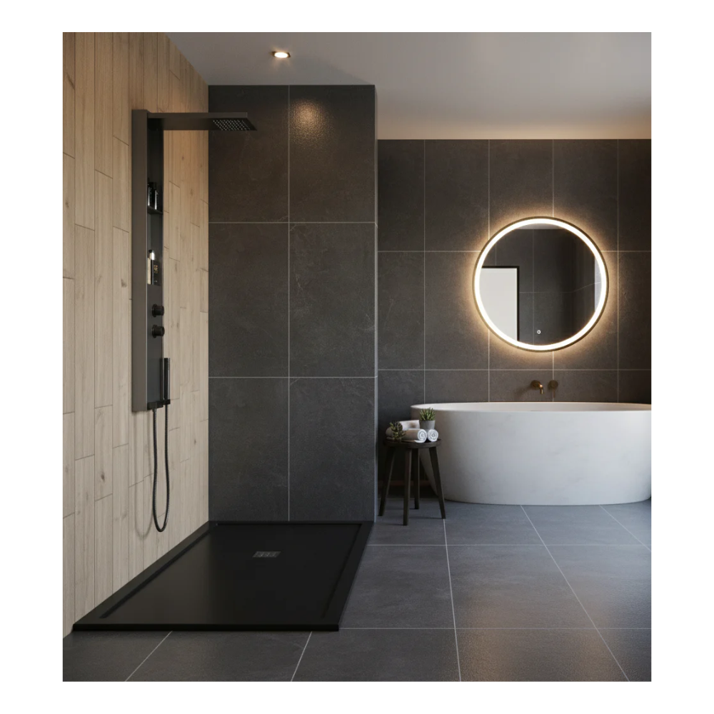 Fabricat din materiale premium rezistente la umiditate și coroziune, panelul își păstrează calitatea și aspectul impecabil pe termen lung. Montajul este rapid și compatibil cu majoritatea băilor moderne, aducând instant un plus de stil și funcționalitate.